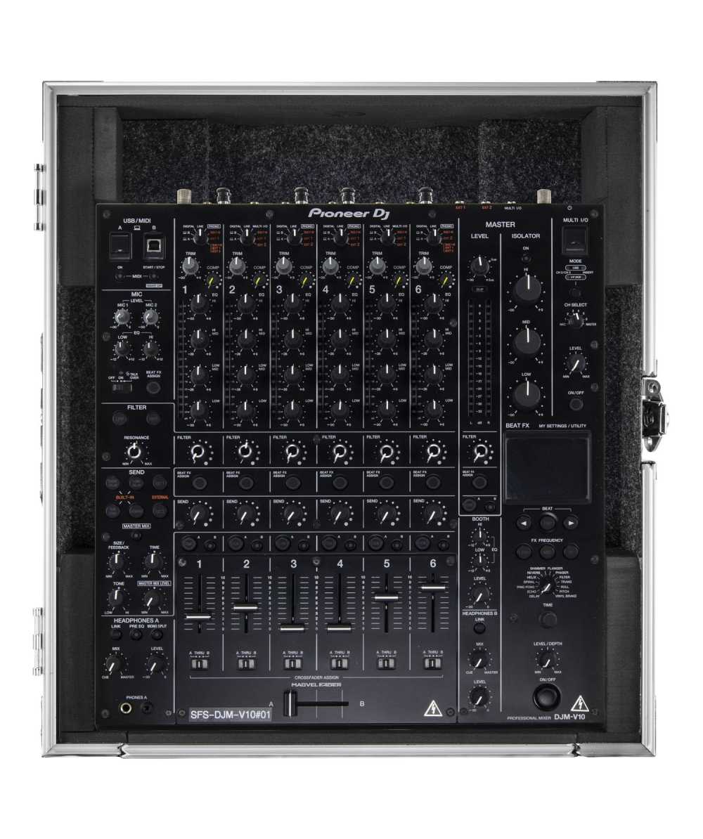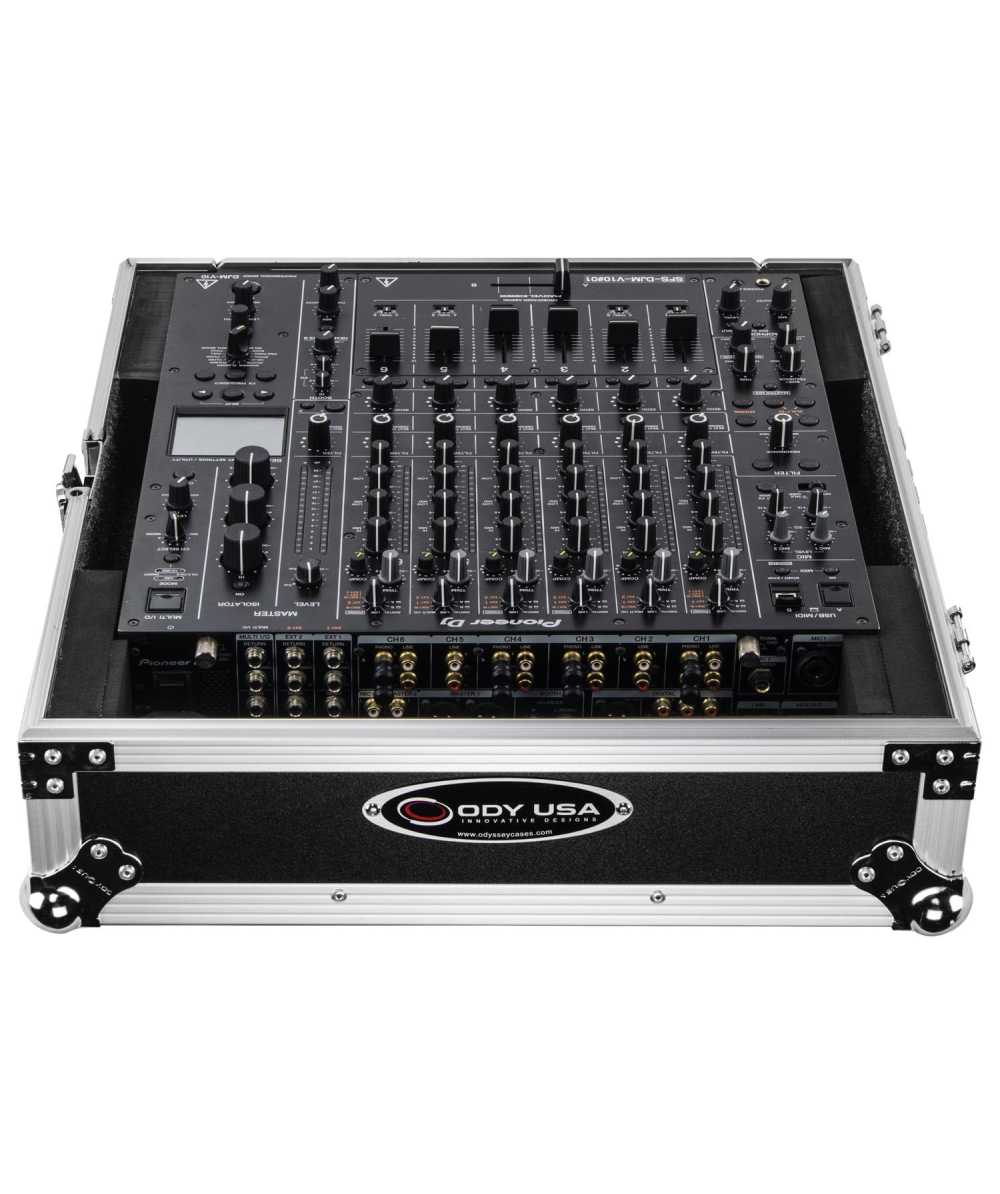 For the Pioneer DJM-V10, Odyssey introduces the Flight Zone ATA FZDJMV10 case. The DJM-V10 sits perfectly safe inside the case with plenty of rear space essential for multiple player connectivity. The case has a bottom storage pit that helps keep the mixer well ventilated as the dance floor heats up