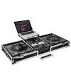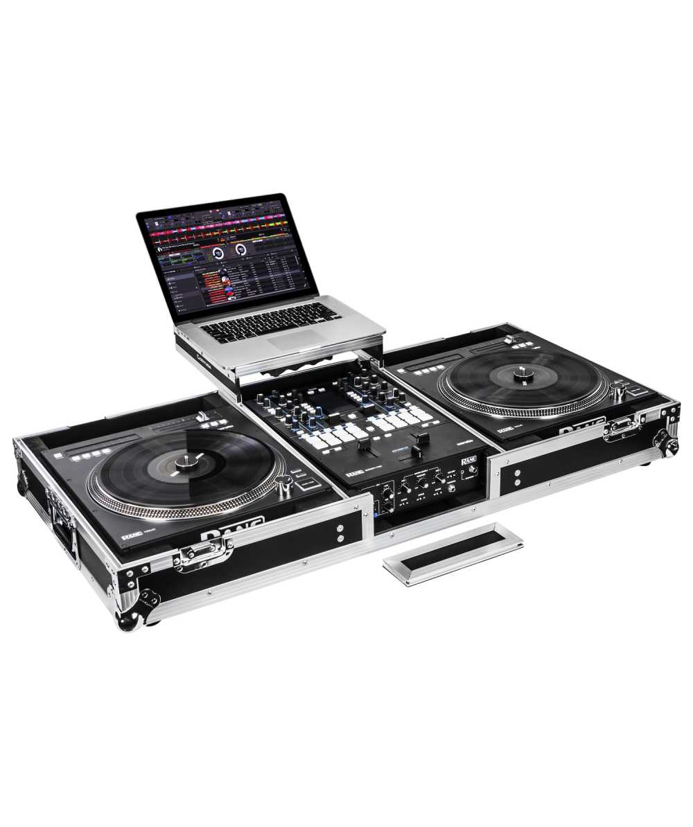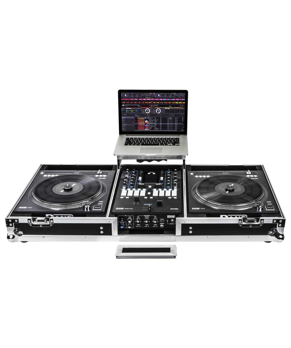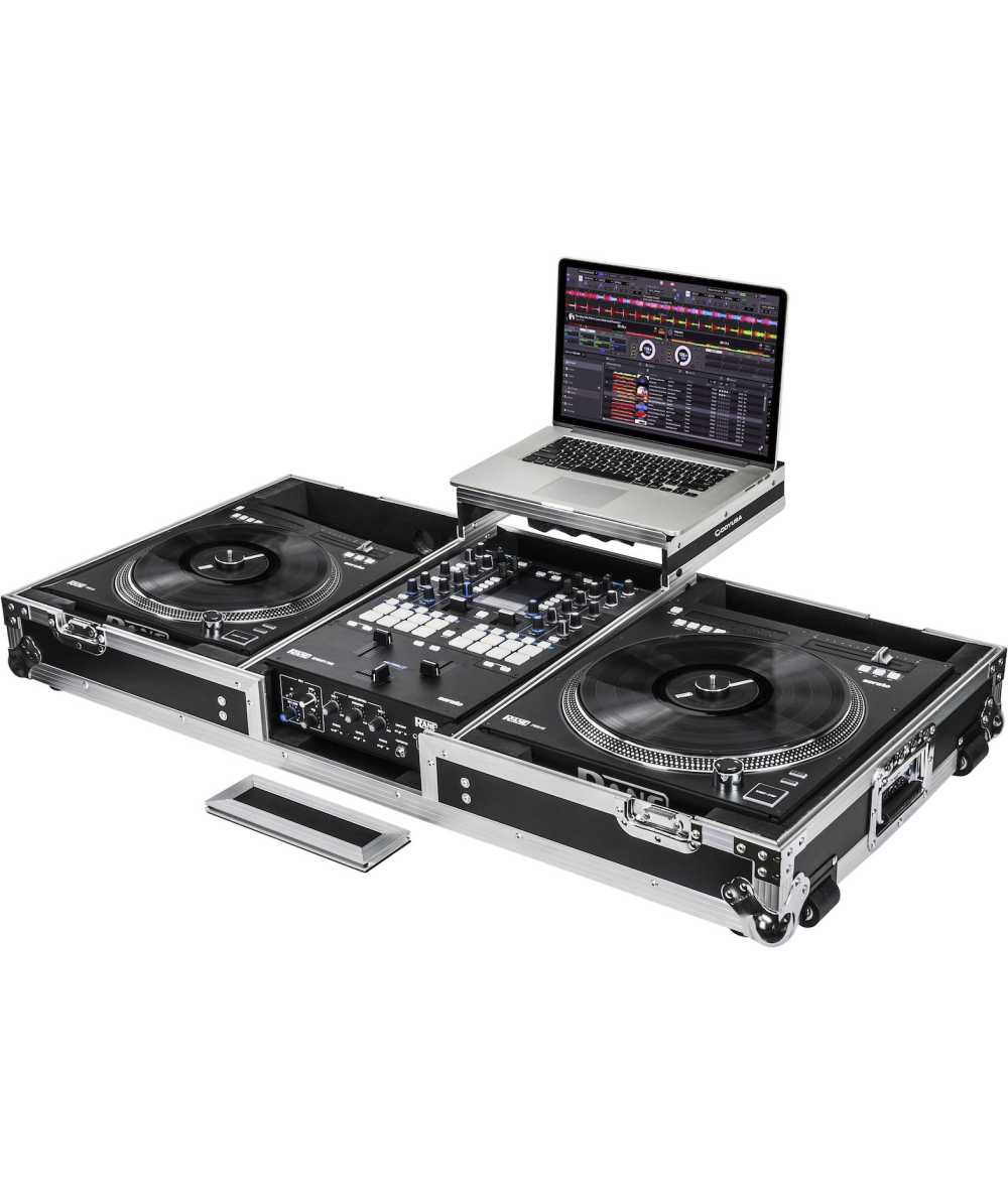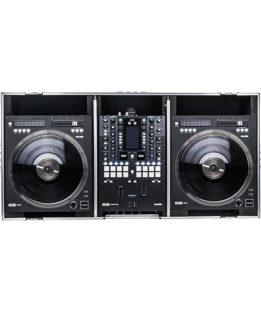 The Flight Zone series FZGSRANE1272W Low Profile Glide Style Coffin holds one Rane Seventy-Two DJ mixer and two Rane Twelve motorized turntable controllers. Features include rugged built-in recessed roller wheels, sturdy 90 degree handles on the lid, recessed latches and spring-loaded handles, heavy-duty ball corners, and a front mixer removable access panel. Cabling is clean and easy with convenient access ports throughout the rear of the case.