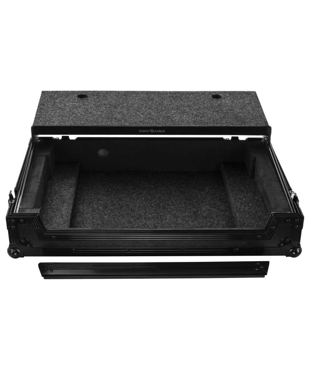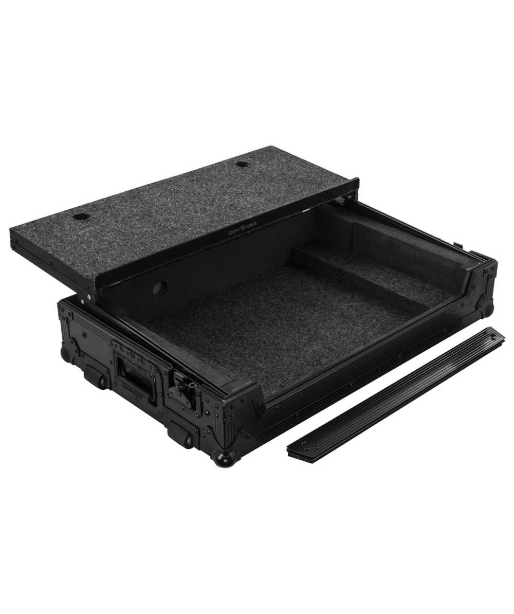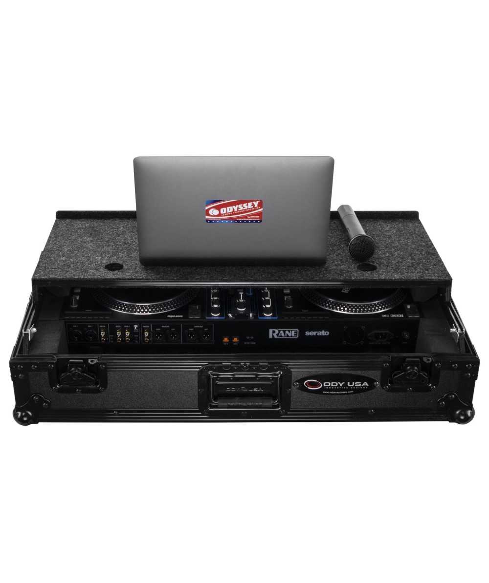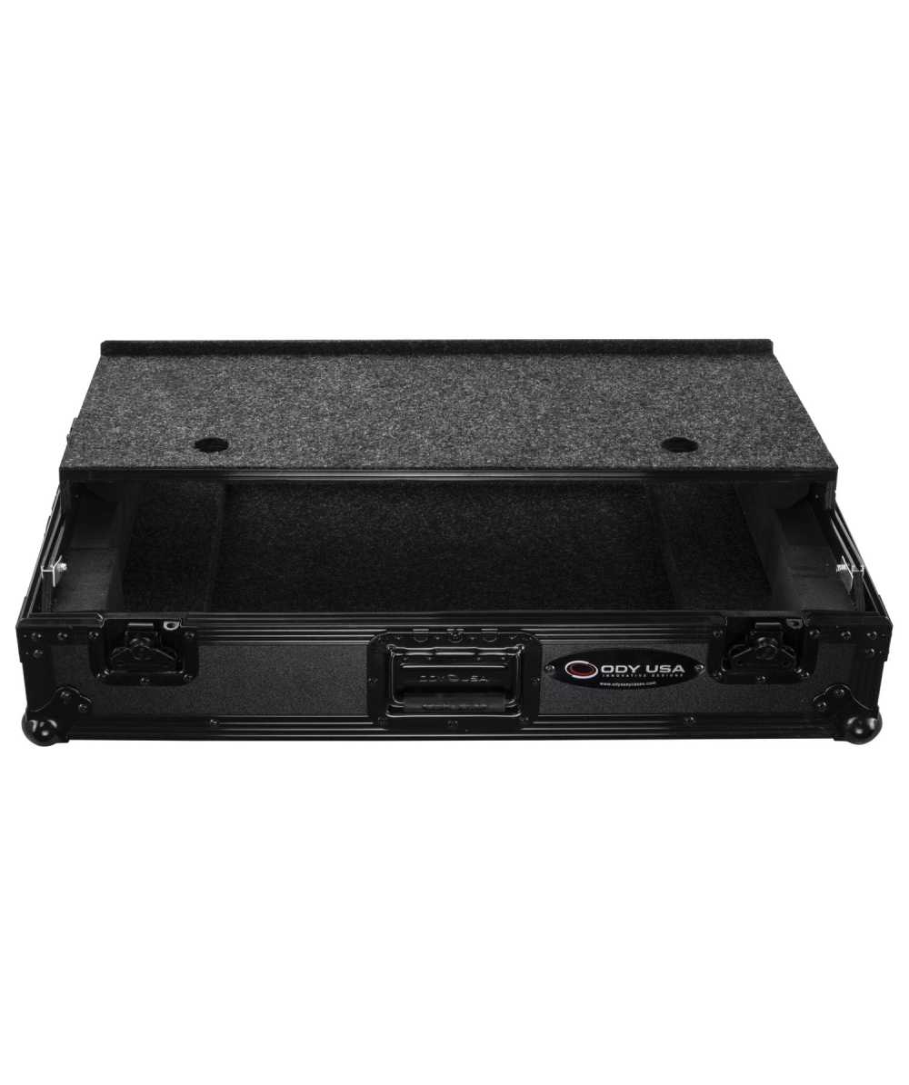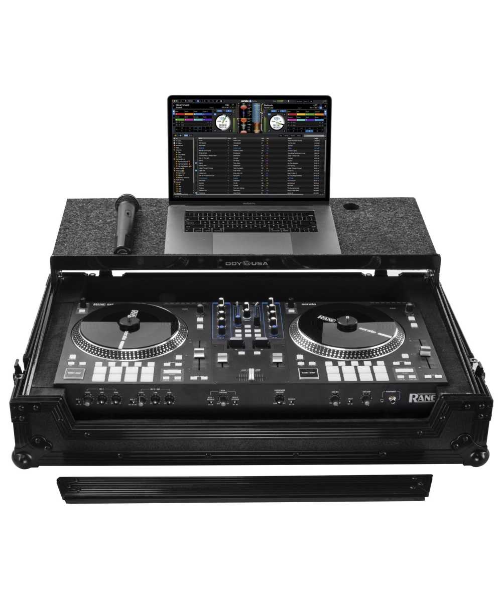 Level up your Rane One/One MKII controllers with Odyssey's Rane One case in black with Odyssey's patented Glide Style (GS) platform (FZGSRANEONEBL). The removable V-cut front panel allows access to the front knob controls and input jack ports. The patented Glide Style platform is perfect for positioning your laptop, tablet, effect processors, and other gear right where you want it over the controller. Features include bottom rubber feat, roller wheels for convenient transport, hefty ball corners, heavy-duty recessed latches and handles, and a rear cable management port, essential for a clean setup