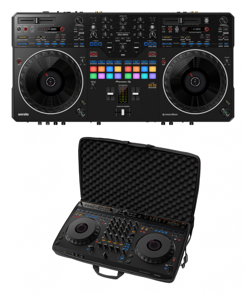The DDJ-REV5 is a new-generation controller with Serato DJ Pro and rekordbox compatibility. This 2-channel unit offers an authentic scratch experience and innovative features including its large jogs, MAGVEL FADER, dedicated buttons for Stems control, the first-ever Auto BPM Transition, and Piano Play mode.