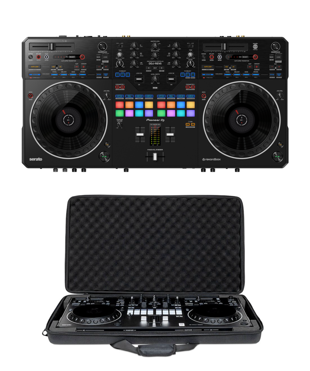 The DDJ-REV5 is a new-generation controller with Serato DJ Pro and rekordbox compatibility. This 2-channel unit offers an authentic scratch experience and innovative features including its large jogs, MAGVEL FADER, dedicated buttons for Stems control, the first-ever Auto BPM Transition, and Piano Play mode.