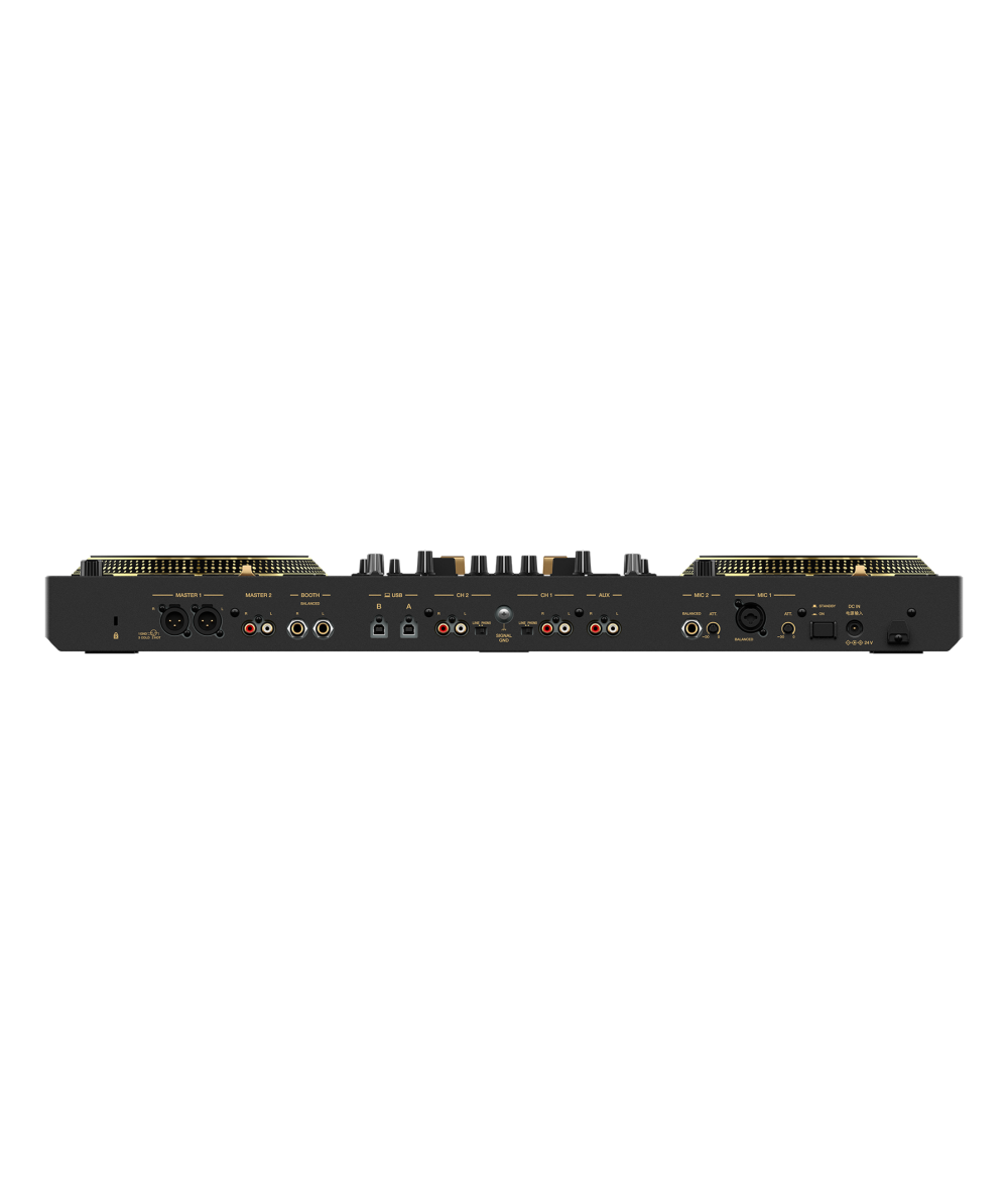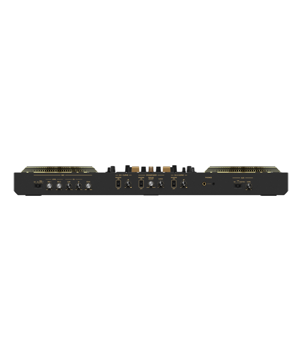 The DDJ-REV7 is solid and robust, yet still lightweight enough to grab by the handles on the chassis and carry to your next gig. Contrasting matte and hairline finishing in different sections of the aluminum top plate create distinction between the deck and mixer sections, so the layout looks like a traditional 2 x turntable + mixer setup, while the On Jog Displays mimic the label in the center of a vinyl record