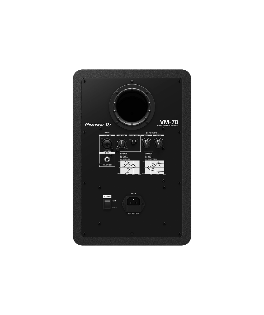 The active VM-70 produces clear audio with fast-attacking, punchy bass. The speaker can be tuned to suit the characteristics of any room, making it perfect for recreating a club sound when you’re DJing or providing a flat frequency response when you’re producing music in a home or professional studio setting.