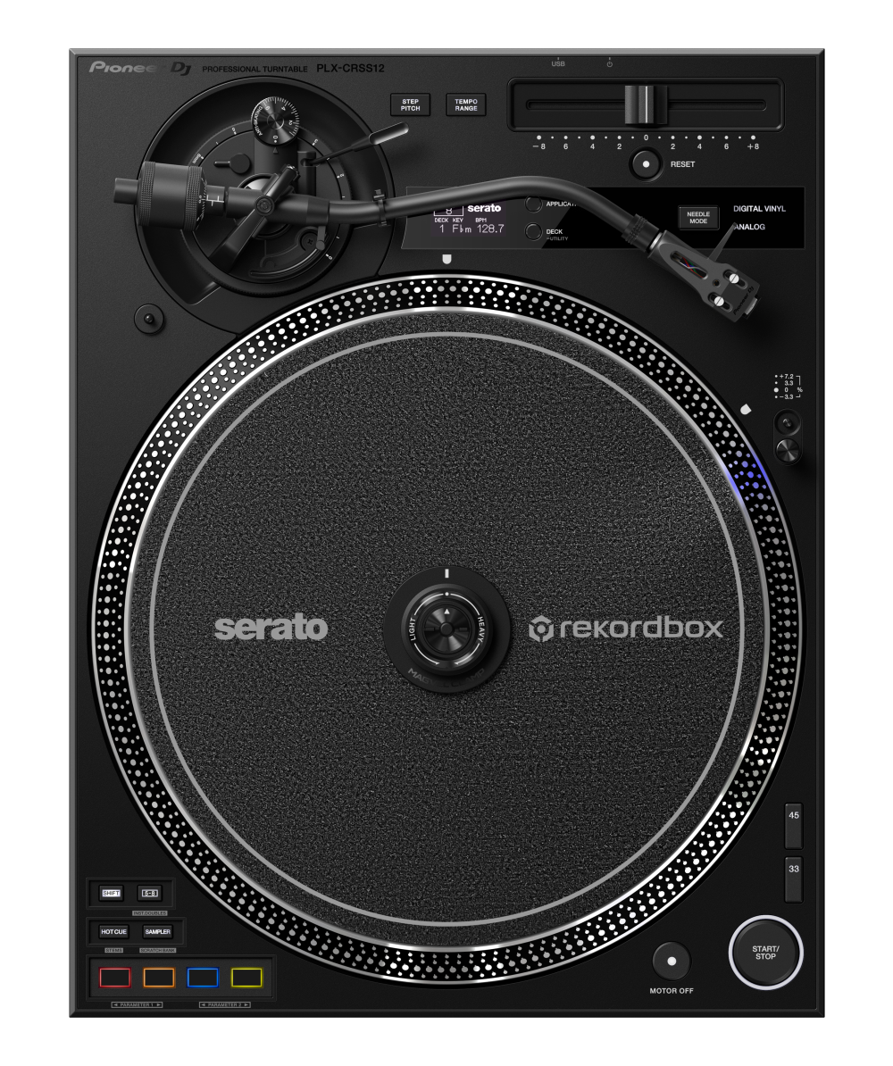 The PLX-CRSS12 is compatible with Serato DJ Pro and rekordbox. By connecting this unit to a PC/Mac with DJ software installed, and to a mixer that supports the DVS function of the respective DJ software, you can start playing in Digital Vinyl mode and use the Performance Pads.