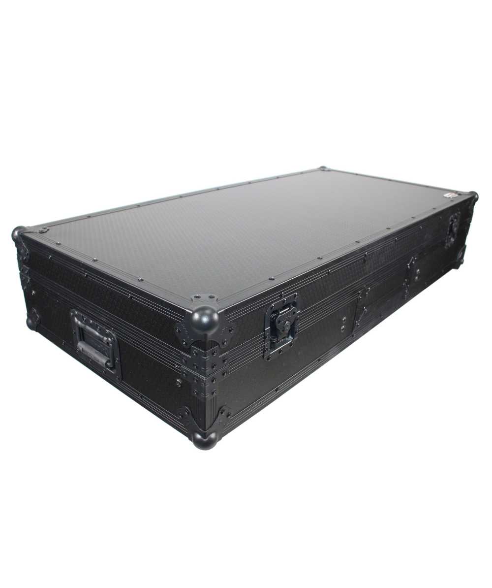 The ProX XS-TMC1012WLTFBTLBL Flight Coffin Case is For Rane 72 mixer and 2 Turntables in Battle Mode w/ Full Laptop Shelf with Black hardware on Black laminate. This case is constructed with ProX Gig Ready Signature Series 3/8" Plywood for complete protection of your investment. Standard on all our cases is steel, heavy-duty ball corners to withstand the rigorous travel that a pro-DJ demands. Black on Black modern design will turn heads and keep with the decor of any venue.