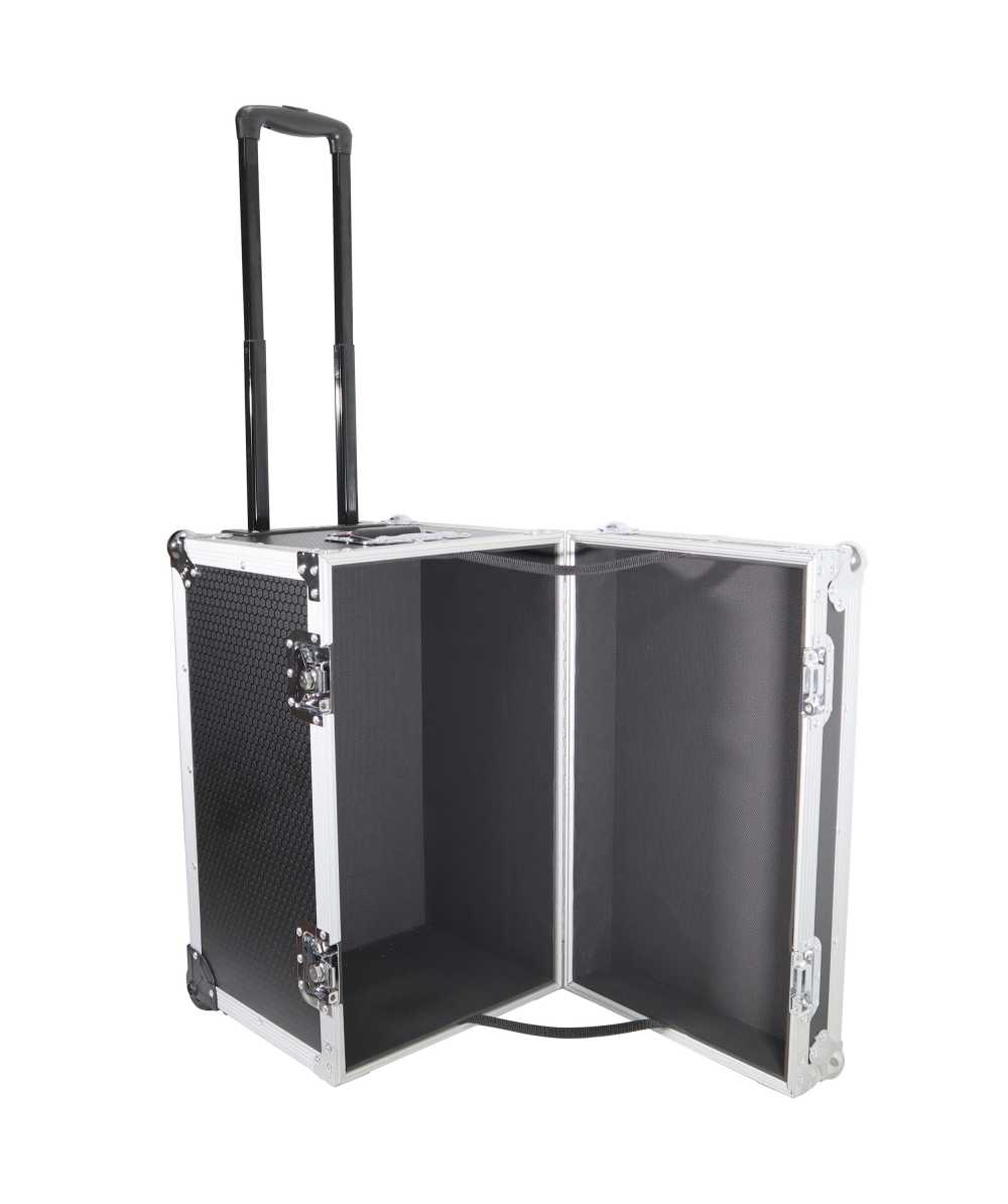 ProX T-UTIHW MK2 is a Rolling Utility Case for 100 LP Vinyl Records, Lighting or cables W/ Retractable Handle and Low-Profile Recessed Wheels and is a modern case for the modern DJ! This lightweight utility case is perfect for mobile and club DJs who need quality protection and effortless, smooth transport. A retractable handle and low-profile recessed casters keep you moving, but you won't be worried about the integrity of your equipment because of durability-minded features such as heavy-duty ball corners and butterfly latches. This flexible case can hold all manner of professional DJ, audio and lighting gear and accessories without breaking the bank or your back! Standard Black on Silver design is constructed with our rugged signature Laminated 3/8" Gig-Ready Series Plywood