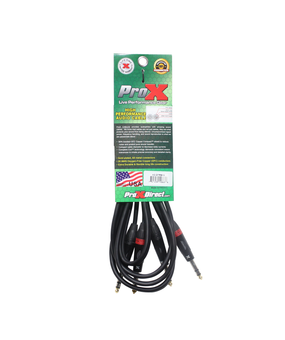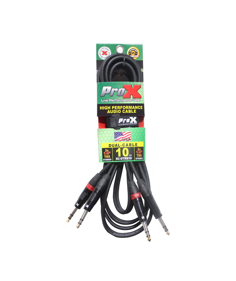 ProX XC-DTRS10 10 Ft. Balanced Dual 1/4" TRS-M to Dual 1/4" TRS-M High Performance Audio Cable