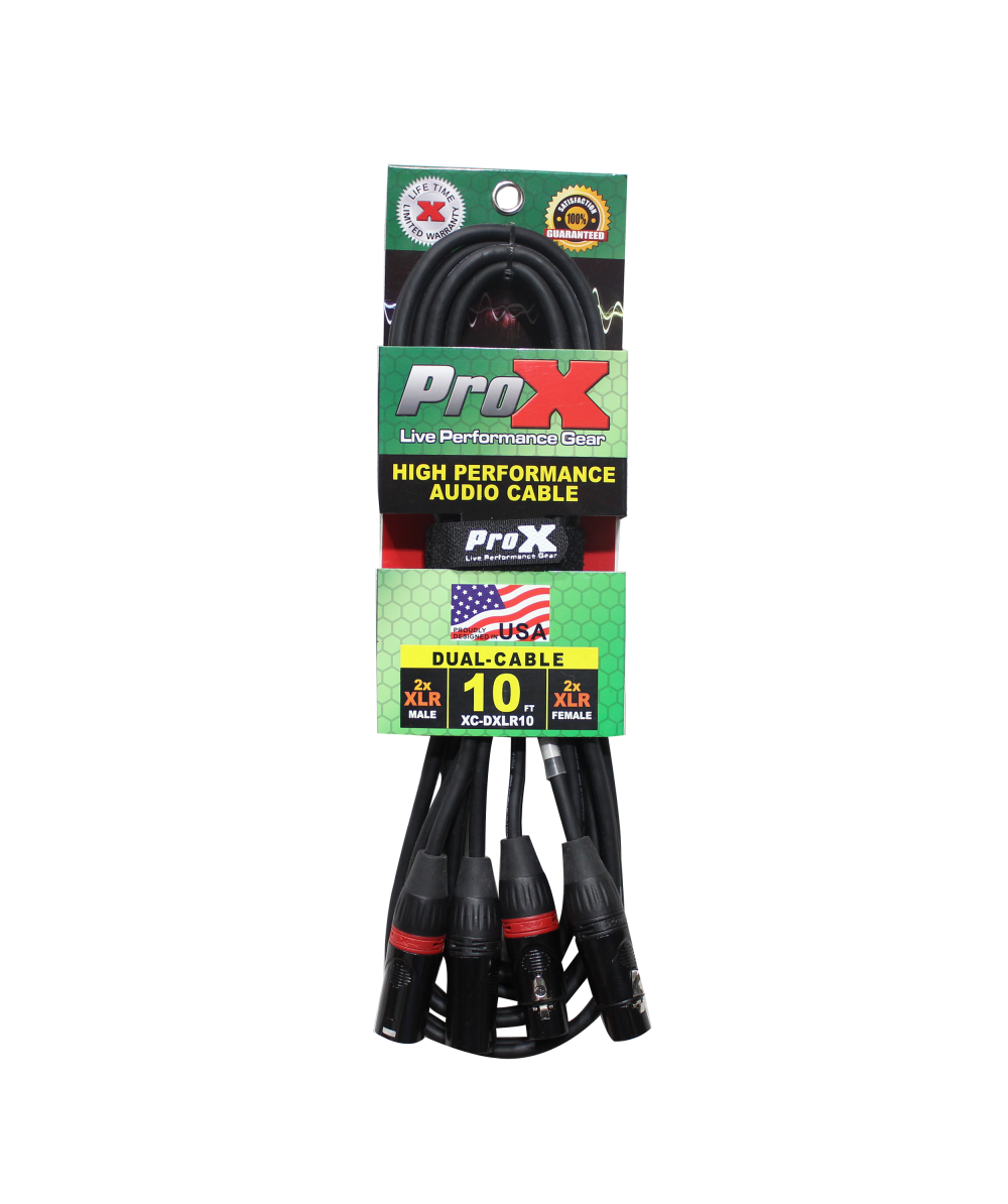 ProX XC-DXLR10 10' Ft. Balanced Dual XLR-M to Dual XLR-F High-Performance Audio Cable. ProX Live Performance Gear Cables are made to last you an entire lifetime. Each cable is made with high-quality materials and delivers a clear signal and connection each time. These cables are made by professionals for professionals like you. Each cable is built for High Performance and to withstand heavy everyday use