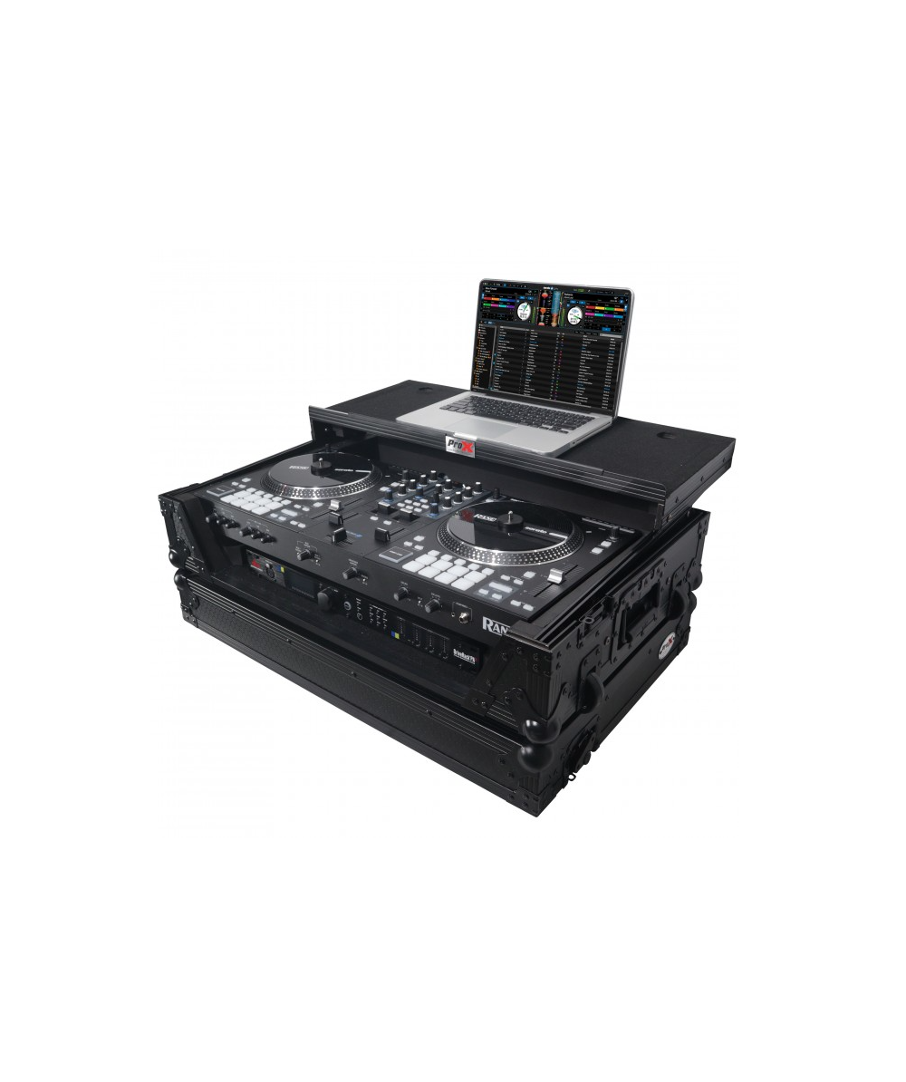 ProX XS-RANEONE WLT Flight Case For RANE ONE DJ Controller with Sliding Laptop Shelf, 1U Rack, and Wheels |Black on Black