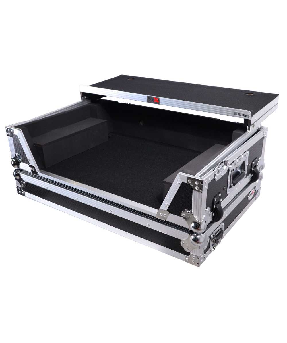 ProX Gig-Ready™ Series cases are constructed from rugged 3/8" Plywood, reinforced with steel ball corners, spring-loaded recessed padded handles, and twist-locking latches. There is additional space for cables and small accessories at the rear underneath the controller for convenience. The removable front panel allows for easy access to the DJ controller front control knobs, headphones, mic jacks, etc.