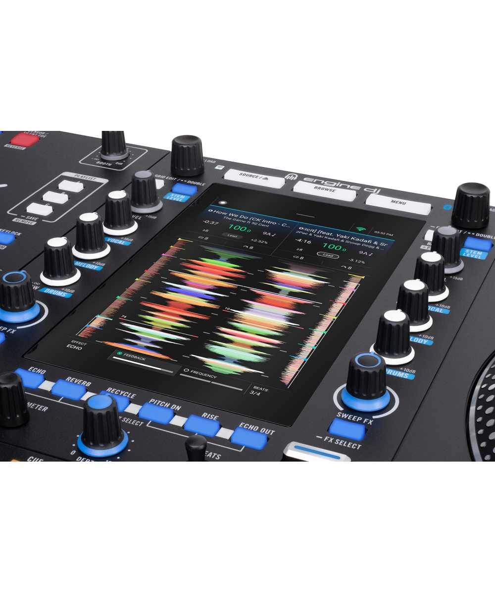 Execute blends and remixes on the fly with standalone Stems, Stem FX, Instant Acapella and Instrumental buttons, Stems pad mode, and Stem Level EQ control. Render tracks for Stems ahead of time with Engine DJ desktop or directly on the SYSTEM ONE (on-board Stems rendering coming early 2026).