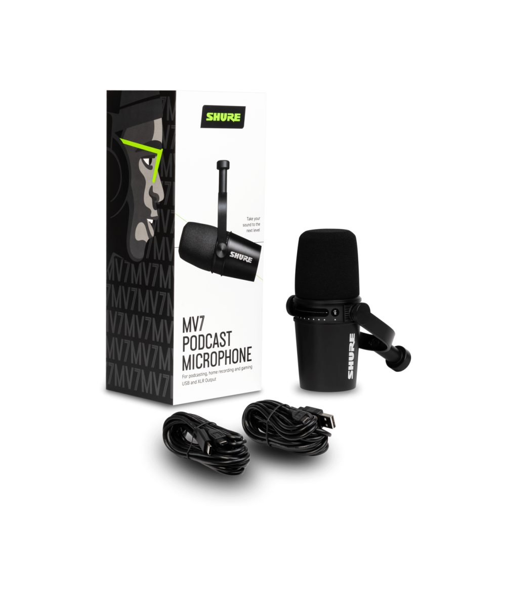 Inspired by the legendary SM7B, the MV7 is a dynamic microphone with both USB and XLR outputs for use with computers and professional interfaces alike. Connect via USB and explore additional set-up features and Auto Level Mode within our ShurePlus MOTIV app, to control your vocal tone, and distance from the microphone. With Auto Level Mode, you can let the microphone do the work for you