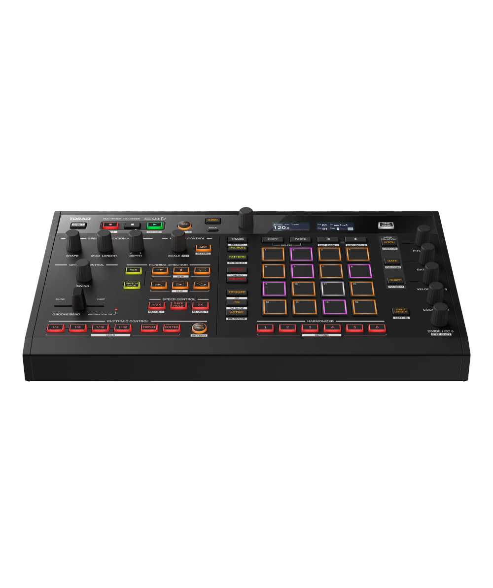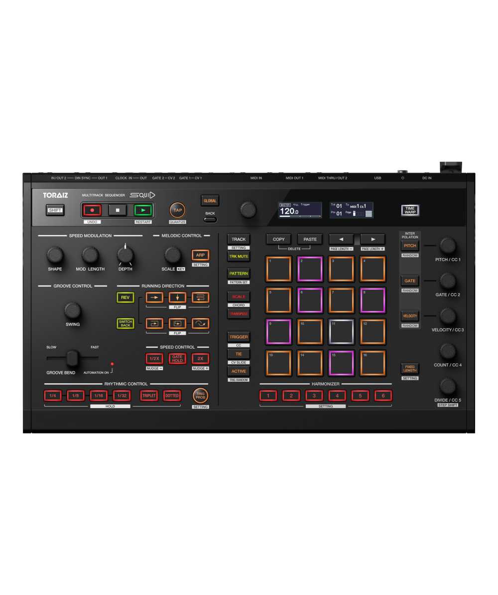 Unlock limitless creativity with the SQUID multitrack sequencer. Part of our TORAIZ series of musical instruments and production equipment, this inspiration tool will be the heartbeat of your studio and live setups. The SQUID will control your workflow and give you the chance to develop new styles of music as you create unique sequence patterns and phrases at the touch of a button. Connect, sync and simultaneously control up to 16 instruments via its multiple input/outputs. The terminals are compatible with various equipment, from your DAW and hardware instruments to modular synths, vintage synthesizers and drum machines.